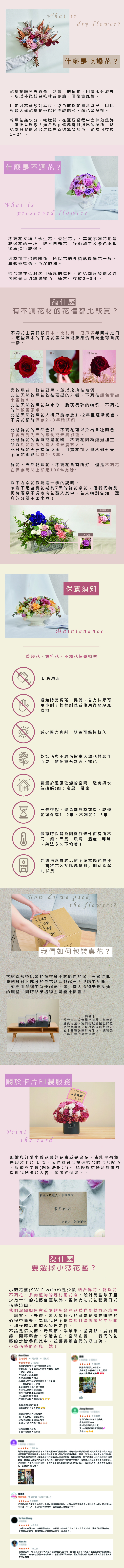 ※不論乾燥花或是不凋花,皆由天然花材製作而成,外貌一定有些微差異。